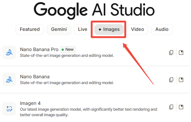 In Google AI Studio, choose “Nano banana” or “Imagen 4”. Imagen 4 gives watermark-free image version. Nano Banana Pro is the sharpest option right now but only works through the API.