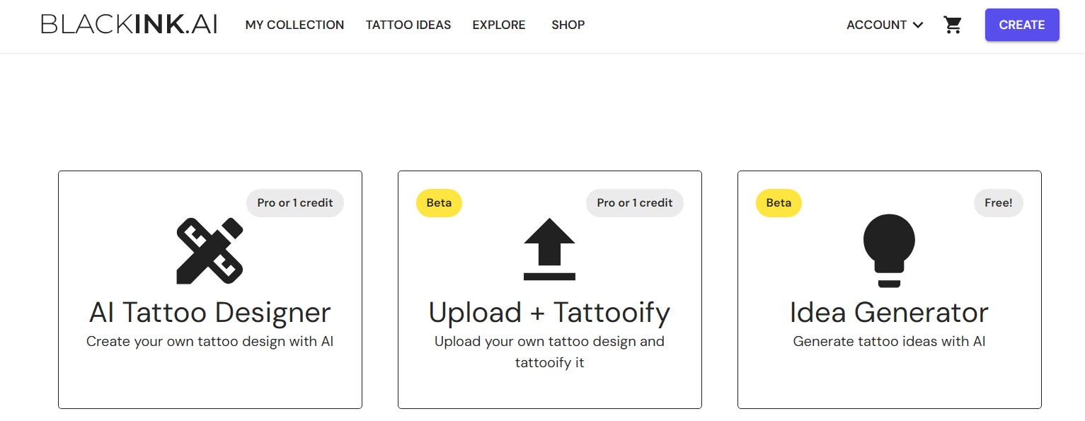 - Its Idea Generator and Upload + Tatooify features are in Beta.