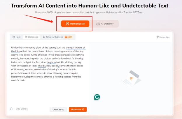 Click "Humanize" to Humanize AI Text and then you will get undetectable output