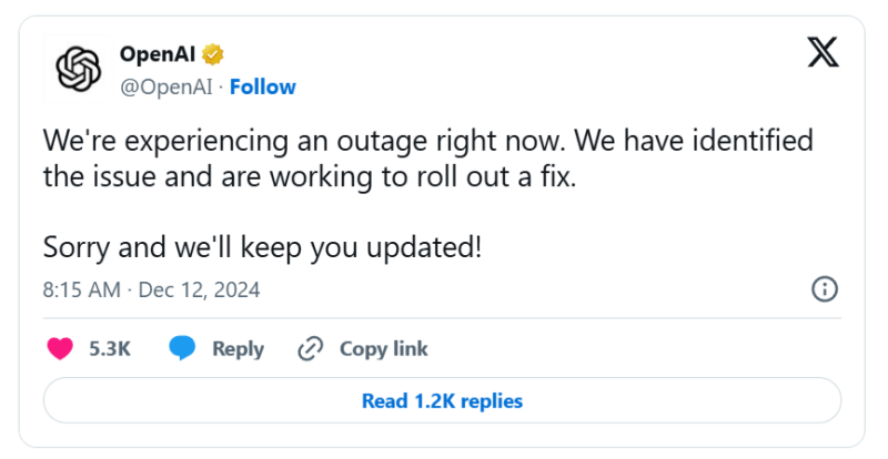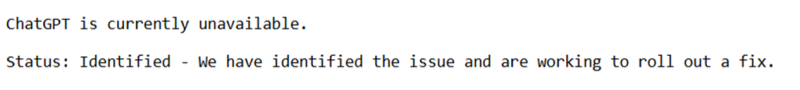 OpenAI is actively working on resolving the issue, as evidenced by their updates on Twitter. They recently stated: "We’re experiencing an outage right now. We have identified the issue and are working to roll out a fix. Sorry, and we’ll keep you updated!" Staying patient and keeping an eye on official updates might be your best option if other solutions fail.