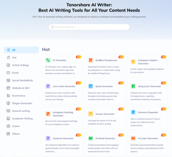 Whether you’re drafting marketing content, academic essays, or personal notes, Tenorshare AI Writer guarantees productivity without interruptions.