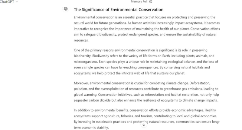 I composed a 300-word essay titled "The Significance of Environmental Conservation." This text was crafted to AI influence without any reflect of natural writing.