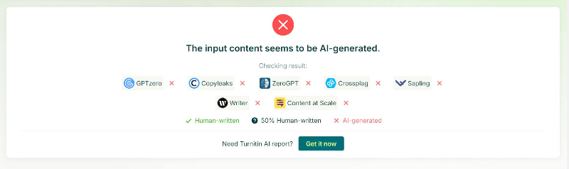 | Quick analysis: Provides fast results, allowing users to check content without long wait times. | Limited features: Lacks advanced functionalities and detailed reporting compared to competitors. |