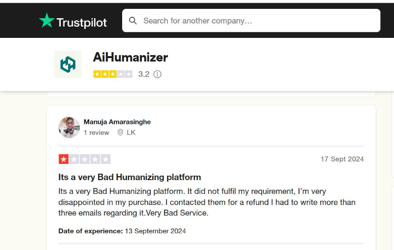 Here is some real user feedback we found on Trustpilot, where many people reported that AIHumanizer AI Detector struggles with accuracy, often misjudging human-written content and labelling it as AI-generated. Users expressed frustration over its inconsistent detection capabilities, noting that it fails to deliver reliable results for critical applications like academic integrity and content verification.
