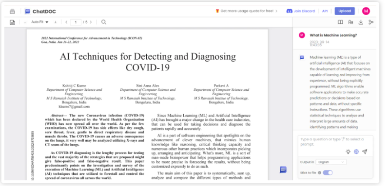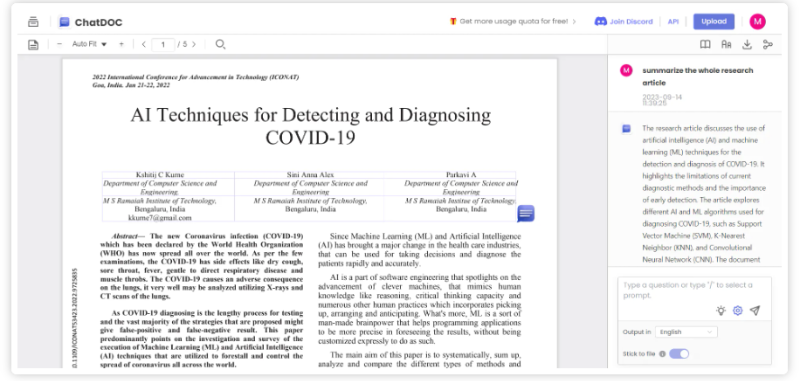 Let's actually test the basic usage Chat with PDF and main functions of ChatDOC. We will take IEEE research papers as test cases and evaluate ChatDOC efficiency with various queries, such as summaries of research papers and explanations of several concepts.