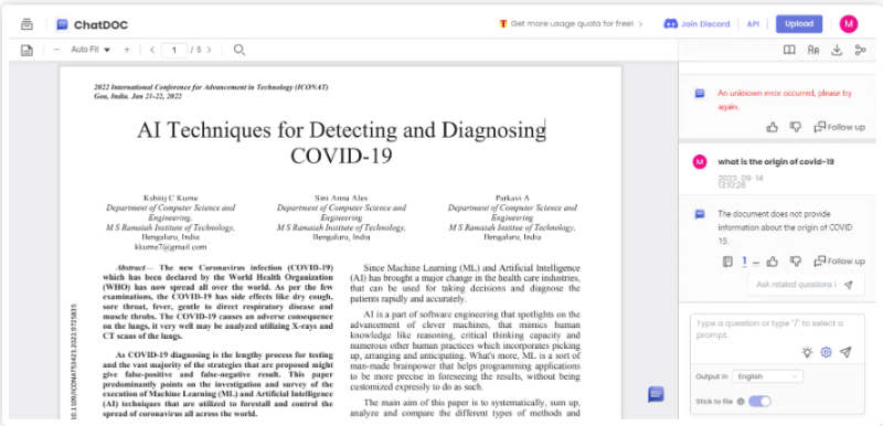 After doing various tests with ChatDOC AI, it can be said that you can assist in reading documents and answer document-related questions in the chat box. But rather than a friendly article summary tool, you need a learning curve to write commands efficiently and use full chat box possibilities.