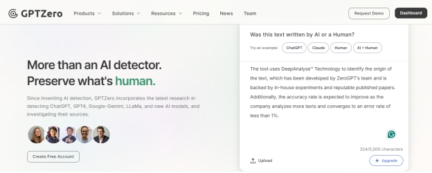 | User-friendly interface | Issues with detection of advanced AI models | Less effective when text has been heavily edited by humans | 6.5/10 |