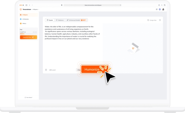 Click "Humanize" to initiate the transformation process.