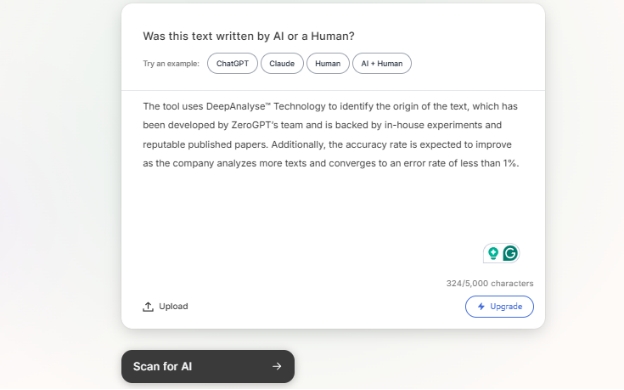 Click the “Scan for AI” button to begin the analysis.