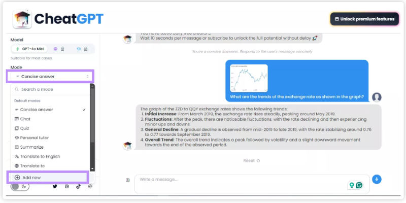 For example, you can upload a data chart to ask CheatGPT for trending insights.