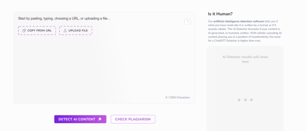 Option 1: Copy the content that you want to detect and paste it into the designated box.