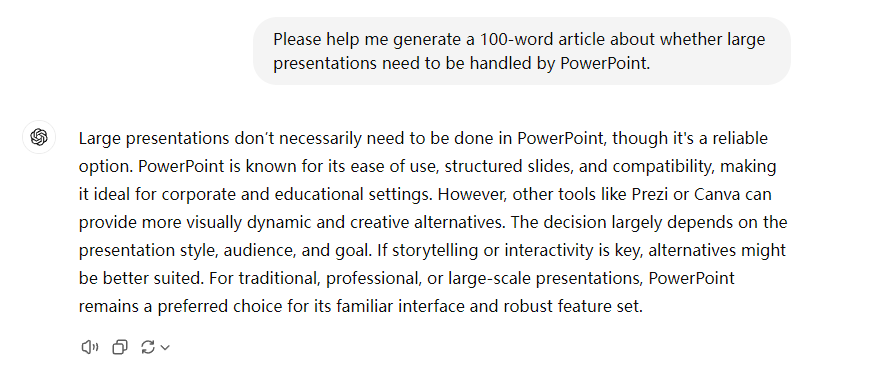 Firstly, I ran a ChatGPT-generated article about whether large speeches need PowerPoint through it.