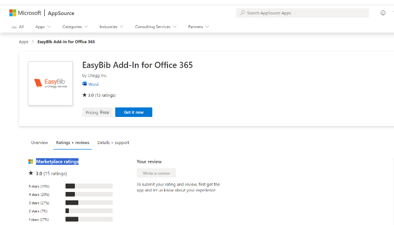 EasyBib Plagiarism Checker Marketplace has received largely negative feedback, with 1-star ratings comprising a significant 27%, matching the highest portion of all reviews. The large number of mediocre 3-star ratings further highlights a general dissatisfaction, suggesting that the platform fails to deliver on its promises.