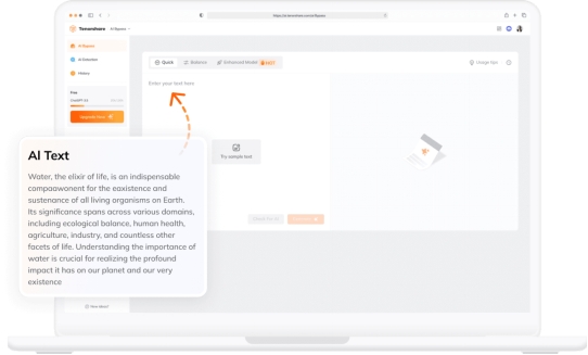 Choose an AI model (Ultra-Enhanced, Balanced, or Fast). Next, click “Humanize” to rephrase content to bypass for AI detection.