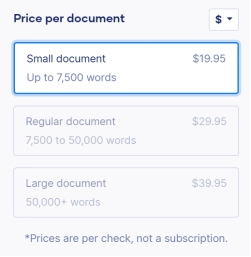 Scribbr doesn’t offer a subscription plan but it has a price-per-check model. Here’s what it can cost you: