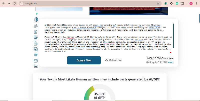 ZeroGPT | 35.35% | No |