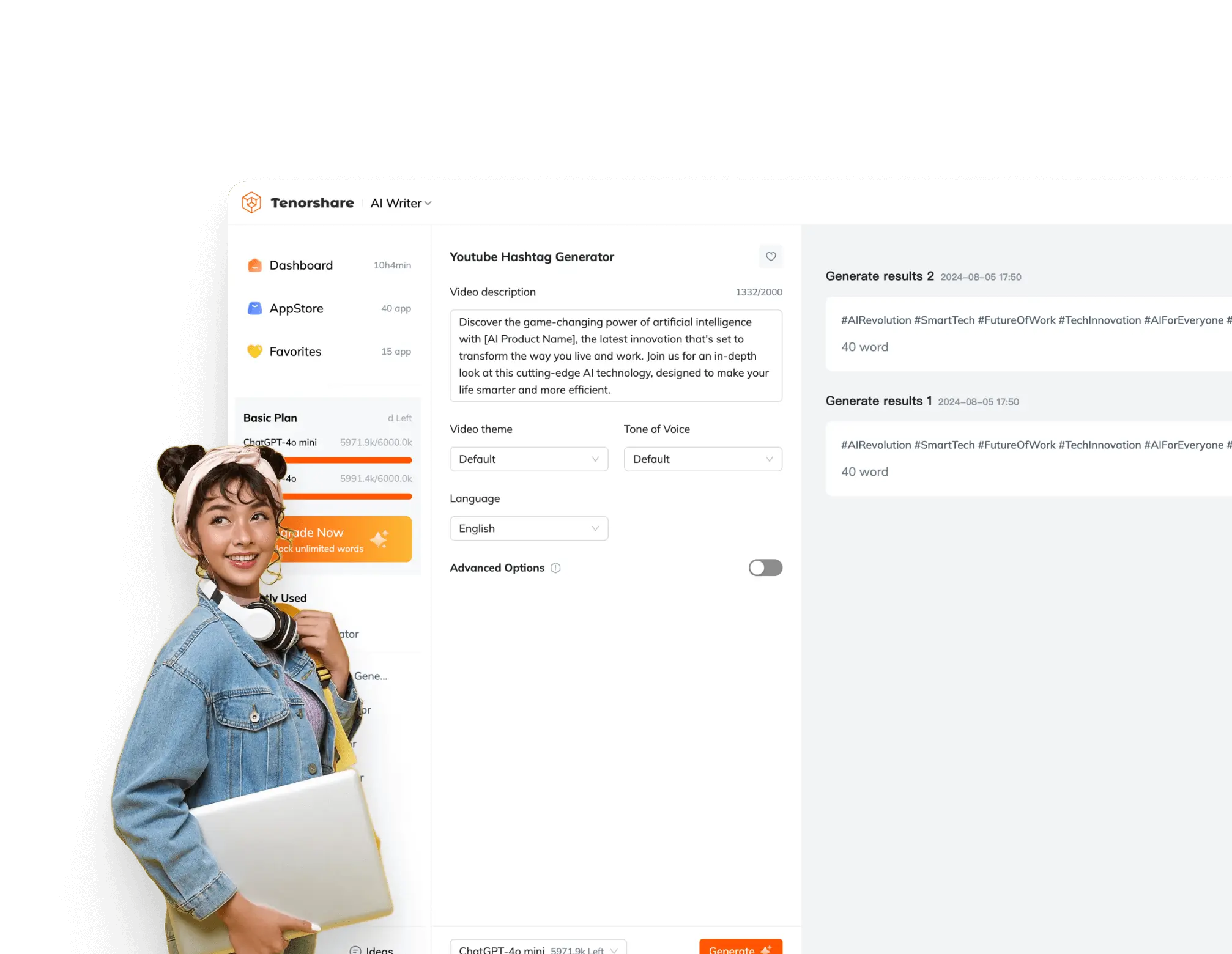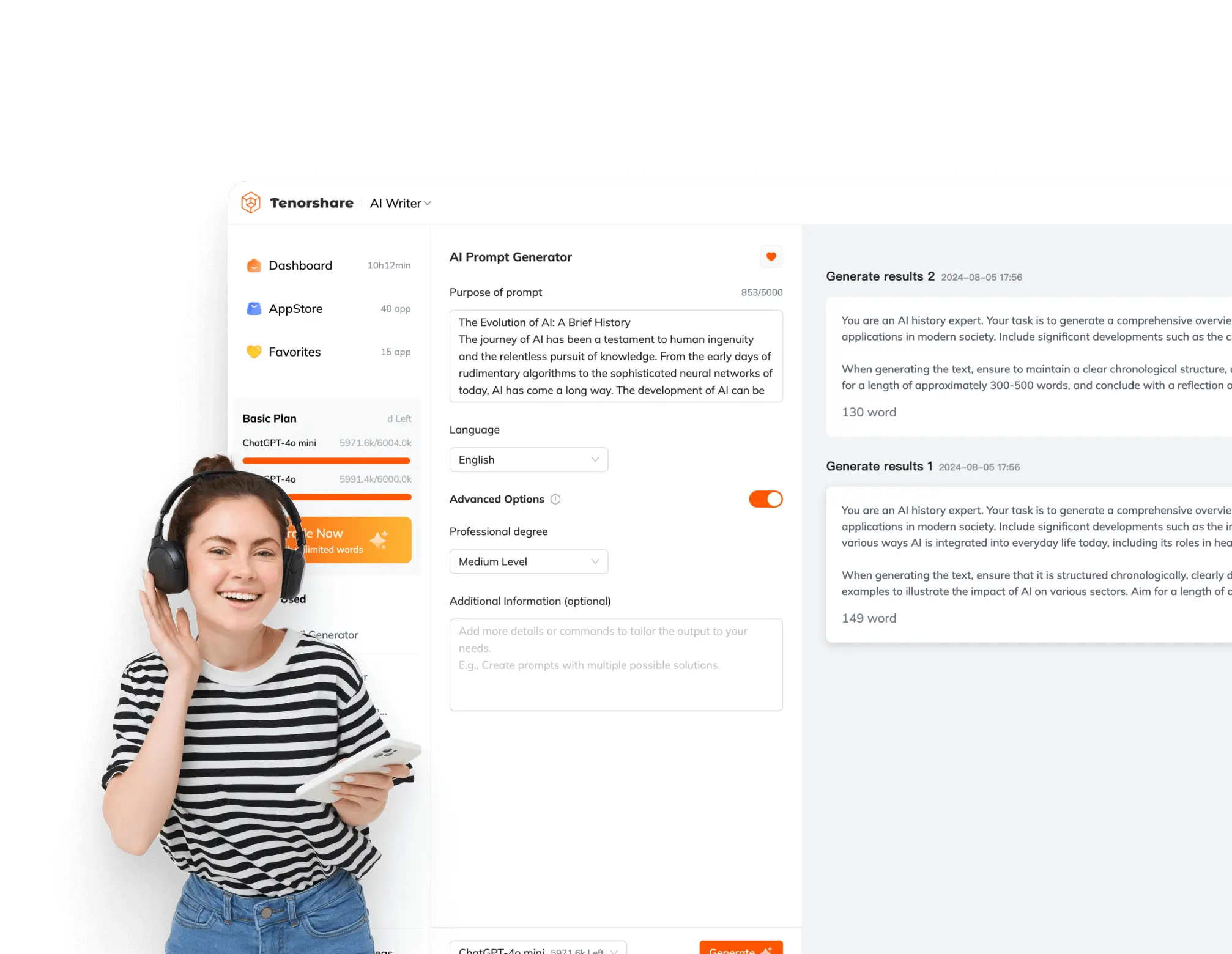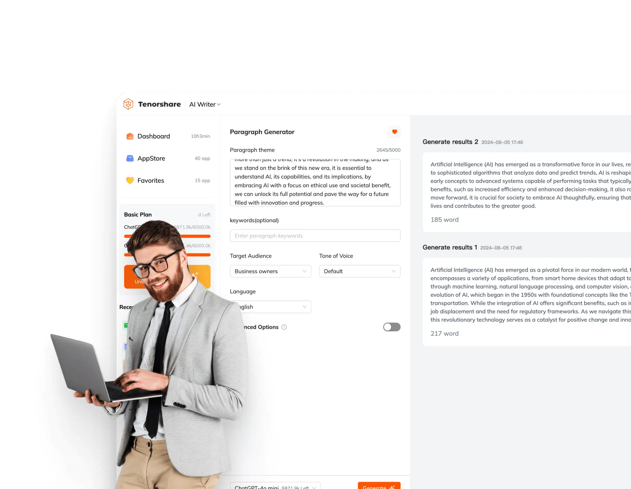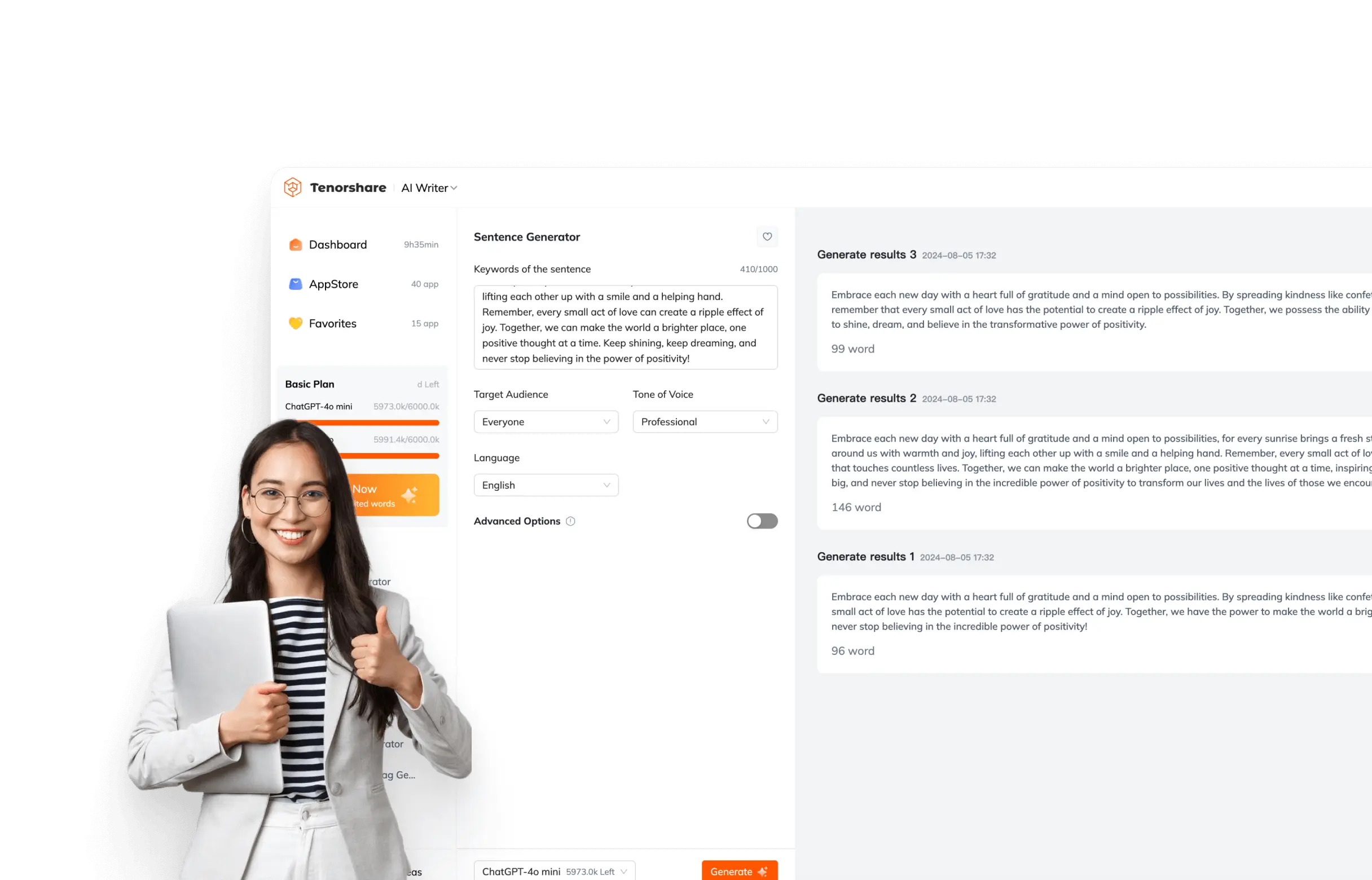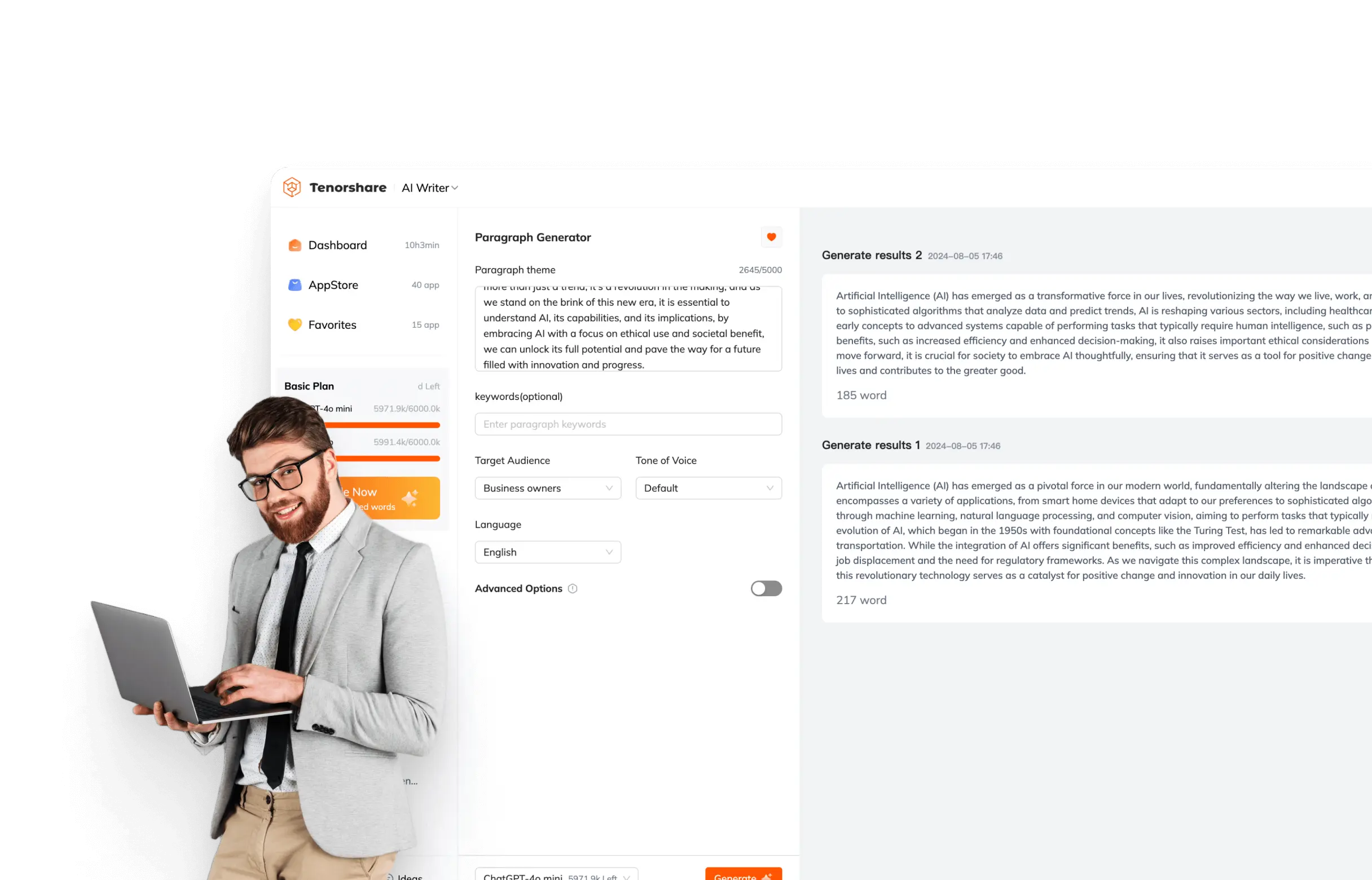 Tenorshare AI Writerで、パーソナライズされた高品質なコンテンツを無制限に作成できます。SNS、マーケティング、広告などに最適です。